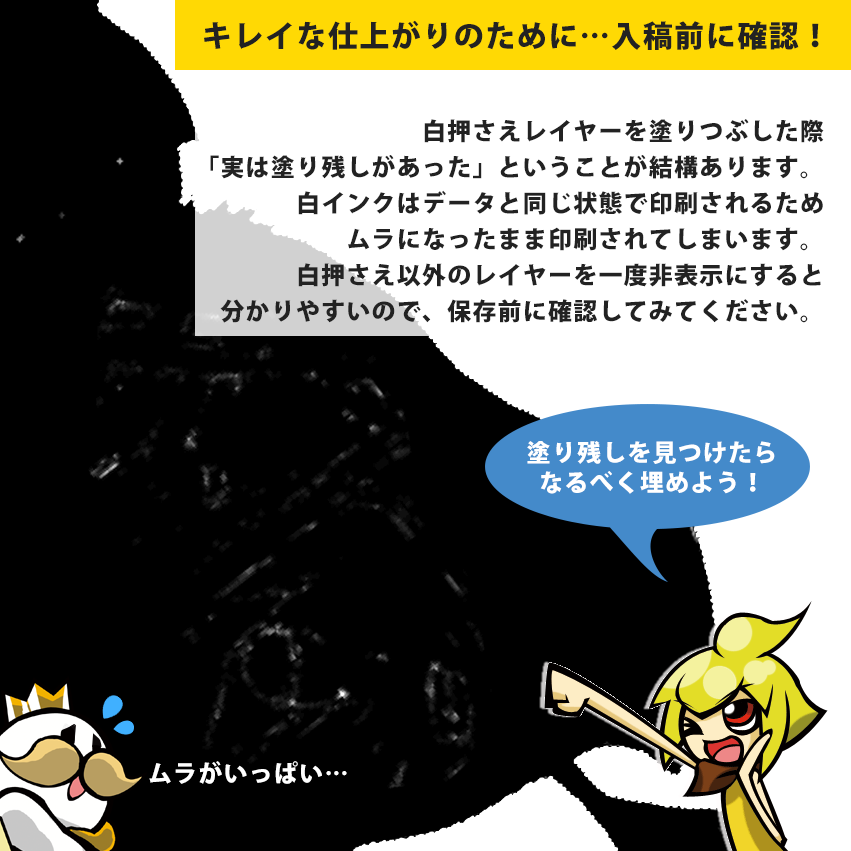 ※鋭利なカットライン、白押さえの塗り残し、その他工程上において不都合が生じる場合等、こちらで軽微な修正を行うことがございます。