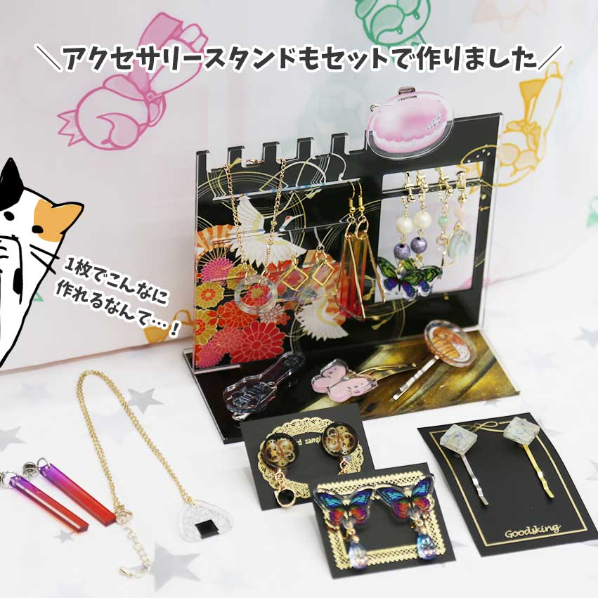 A4のアクリル板にパーツをはめ込み、おもて面にフィルムを貼った状態で納品いたします。